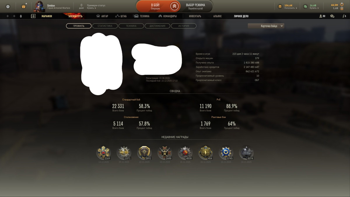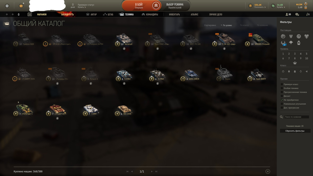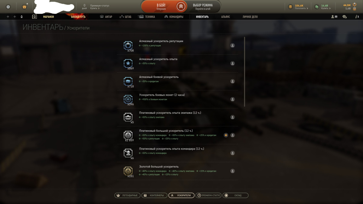 Продам топовый аккаунт. Куплена вся прокачиваемая техника. Все исследовано. Все прокачено и оборудовано. Есть все оборудование, в том числе которое за 5 лямов. Почти вся премиумная техника (нет только Crusader, AbramsX, БМТ-72-140, некоторых крашенок и техники с последнего бп). Куча обликов, декалей, камуфляжей и красок. 106 тысяч золота. Много жетонов и ускорителей. Премиум статуса хватить на жизнь в игре.) Играл с 2015 года. Много боев во всех режимах. Продаю в связи с тем, что нет времени на игру. Командиры имеются все в игре выкачаны до полковника. Есть много жетонов на опыт командира, экипажа, кредитов, репутации, опыт. Все командиры выкачаны до полковника.