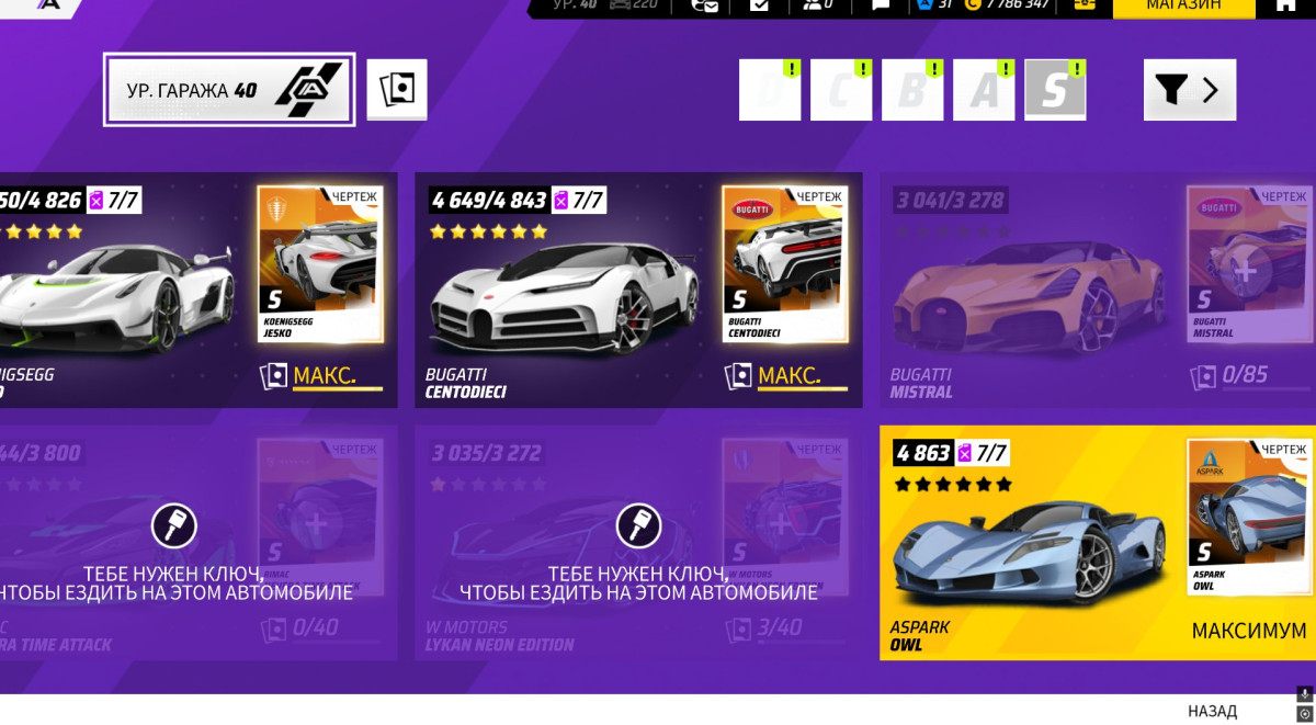 Asphalt Legends Unite - Уровень Lv40 - 220 Cars - 8M Credit