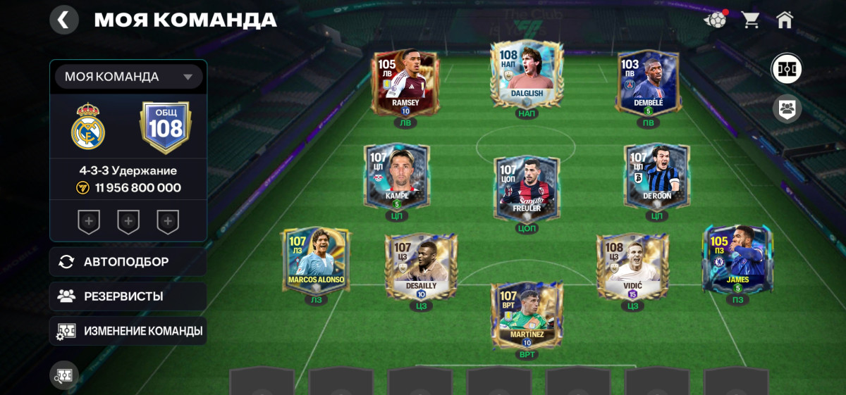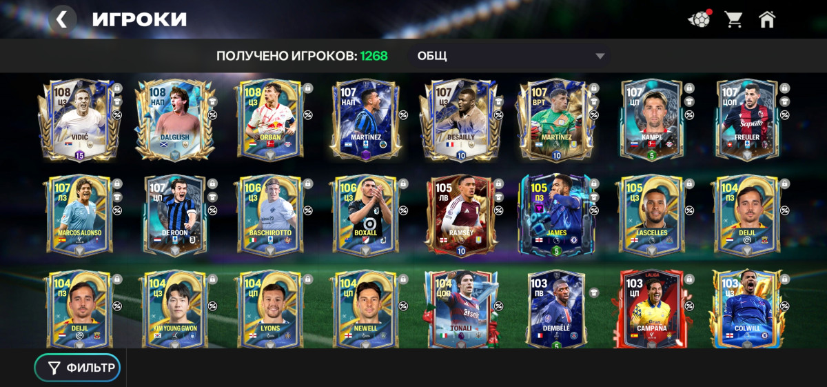 108 общий, состав не очень сильный, но на акаунте 30к самоцветов, много монет и игроков. Аккаунт будет не сложно прокачать.