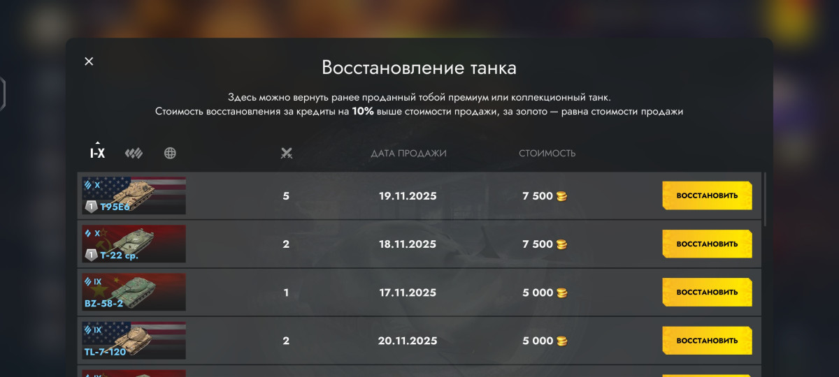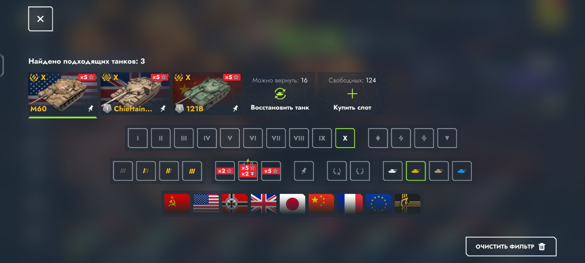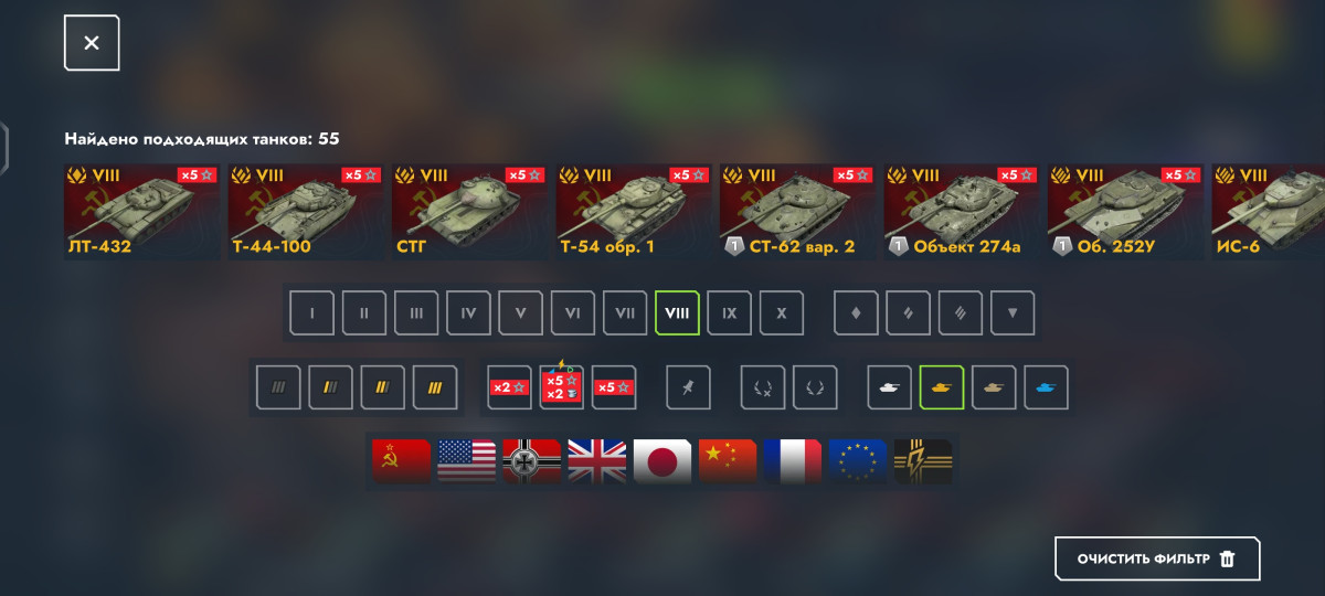 Из них 56 танков 10 уровня (12 коллекционок и еще сколько то в проданных, 3 према, остальное из исследований), 8 танков 9 уровня (4 коллекционки, 4 према, несколько в проданных), 55 танков 8 уровня (все премы, сколько то в проданных), 20 танков 7 уровня (2 коллекционки, остальное премы, еще несколько проданных), и остальное премы и коллекционки из нижних уровней