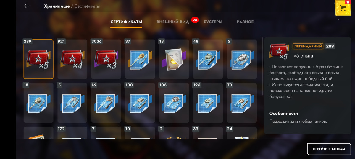 Так же куча всяких бустеров, обычных прокачевыемых танков и т.д.