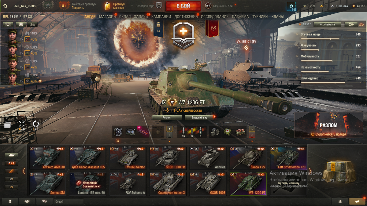 На аккаунте Мир Танков 20 премов